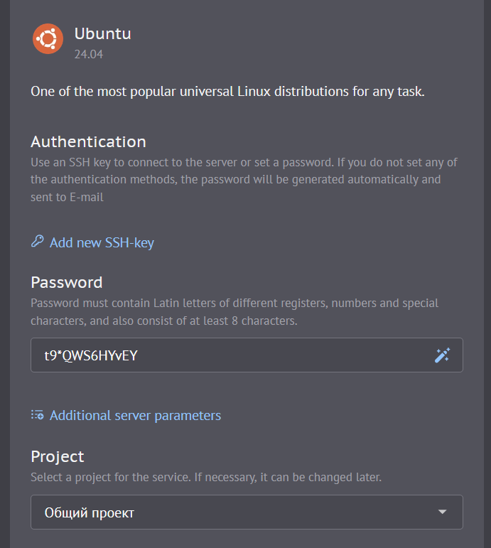 Обязательно запишите пароль — в менеджере паролей, заметках или хотя бы в файле на компьютере. Если вы его потеряете, восстановить доступ может быть сложно, а в некоторых случаях придётся удалять сервер и создавать новый.