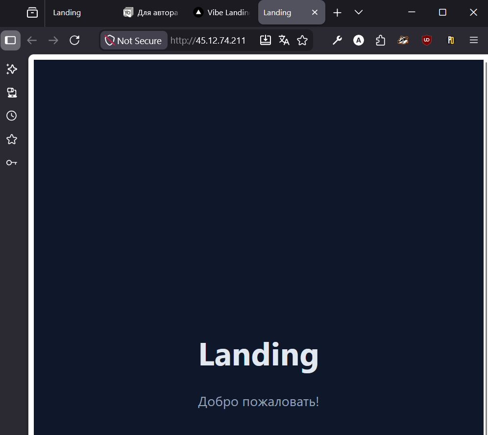 user@computer:~/landing$ ./scripts/deploy.sh <ваш-IP> ~/.ssh/my-project deployЕсли всё прошло успешно — сайт станет доступен по IP-адресу сервера по http (пока что не по https, до него мы ещё дойдём).
